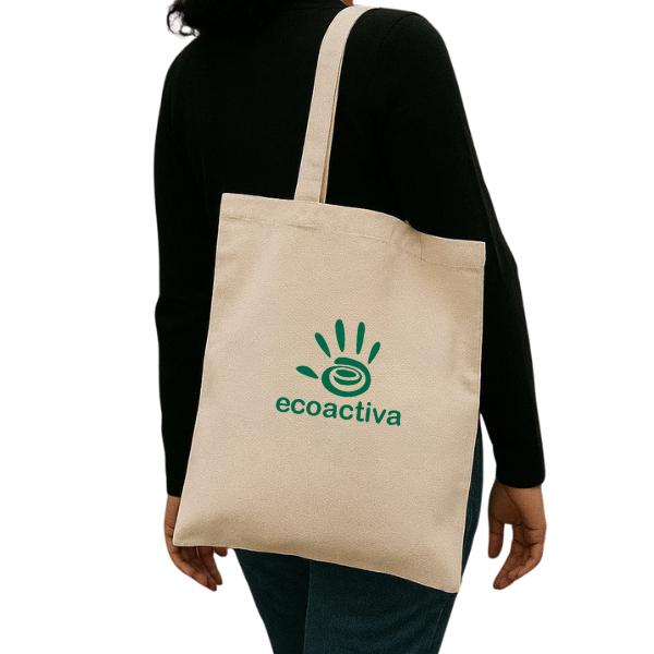 La Tote Bag Ecoactiva en Algodón combina estética, funcionalidad y sostenibilidad. Disponible en dos versiones —117 g y 142 g— para adaptarse a distintos usos: ligera y flexible para eventos, o más gruesa y resistente para carga diaria.