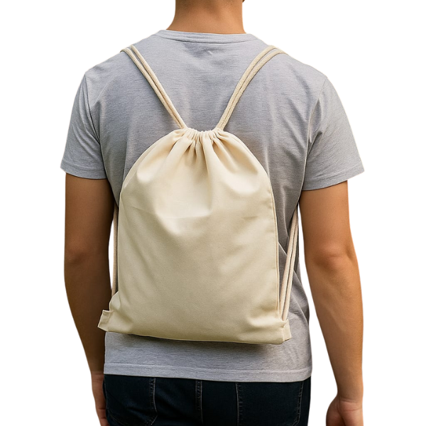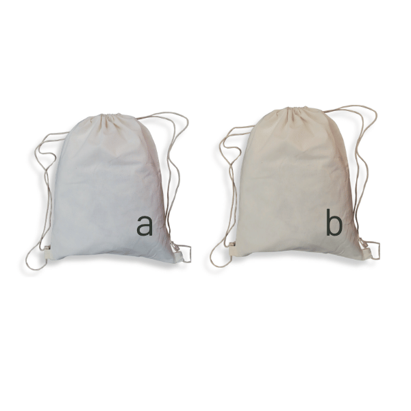 Tula en algodón 100 % de 34 × 40 cm, disponible en gramajes de 117 g y 142 g. Ecológica, resistente y perfecta para estudiantes o eventos promocionales.
