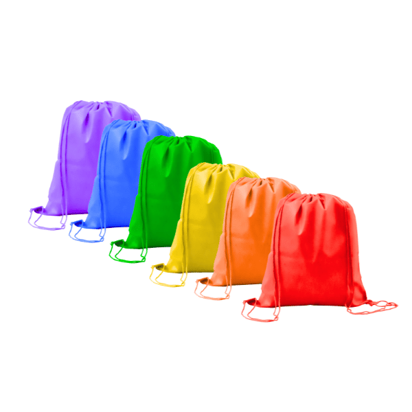 Tula en tela tafetán de 34 × 40 cm, resistente y suave al tacto. Ideal para actividades deportivas, compras o eventos promocionales. Disponible en colores variados para personalizar.